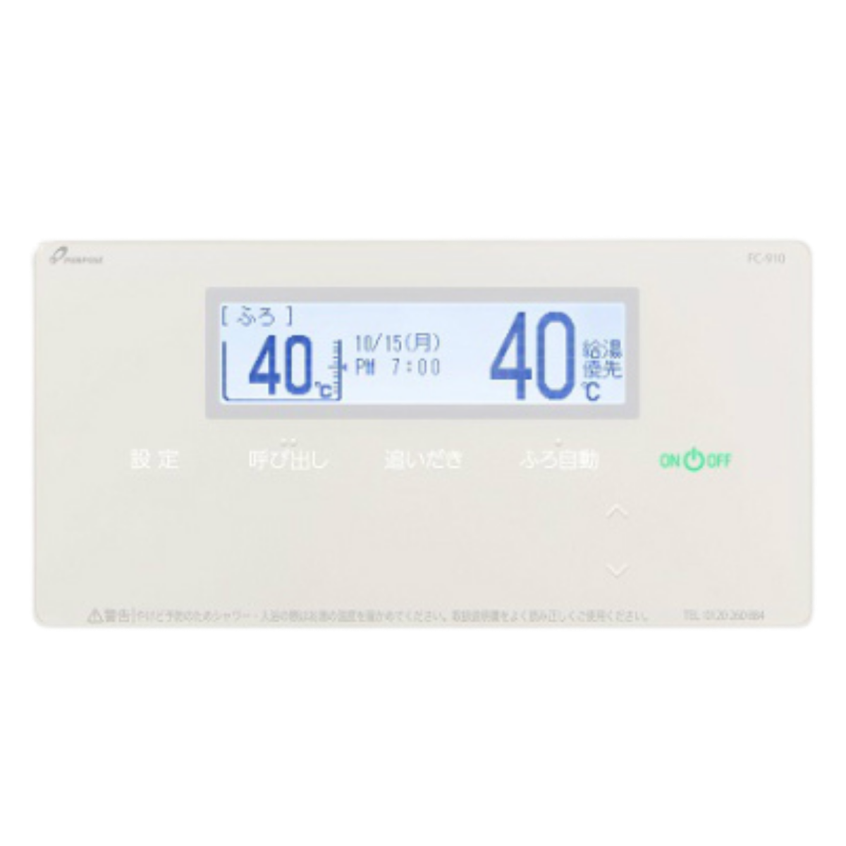 ②給湯温度上下(△▽)ボタンを同時に5秒長押し