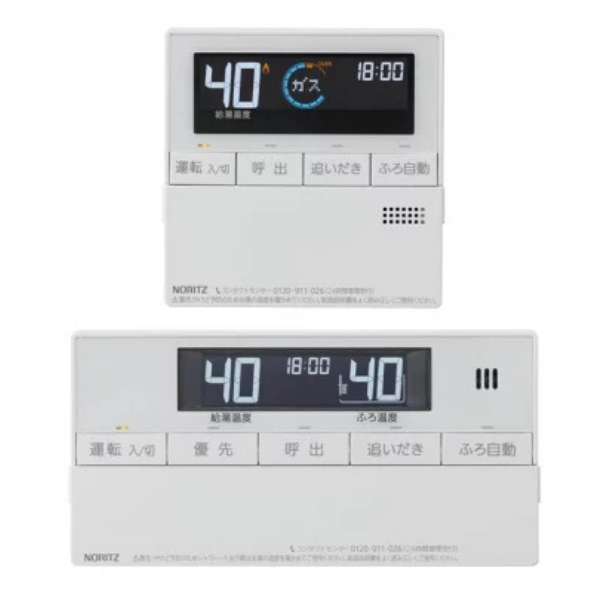 ②給湯温度設定スイッチの+ーボタンを同時に2秒以上長押し。